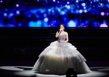张靓颖穿银灰色蓬蓬裙唱响《依赖》,舞台布置浪漫唯美