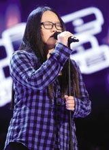 在《中国好声音》第四场中唱了一首阿黛尔的《Someone Like You》加入了刘欢导师的团队。